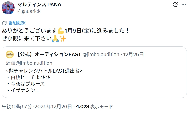 現在は、公式オーディションで勝ち進んでいるようです‼