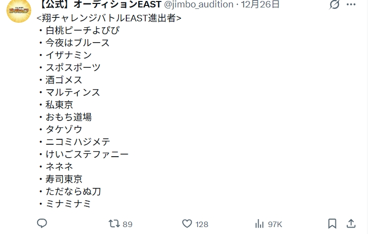 2025年のMー1グランプリは残念ながら2回戦敗退で敗退という結果に終わったようです。