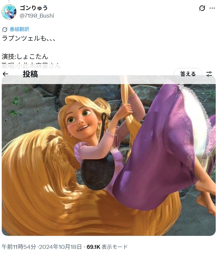 小此木麻里さんも中川翔子さんも、ラプンツェルというキャラクターを深く理解し、同じ方向に向けて表現しているからこそ、違和感ではなく調和が生まれています。