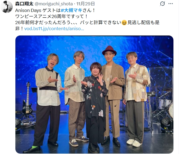 2024年1月から『Dear sunrise』でTVシリーズ『ONE PIECE』エンディングテーマを担当しています。
