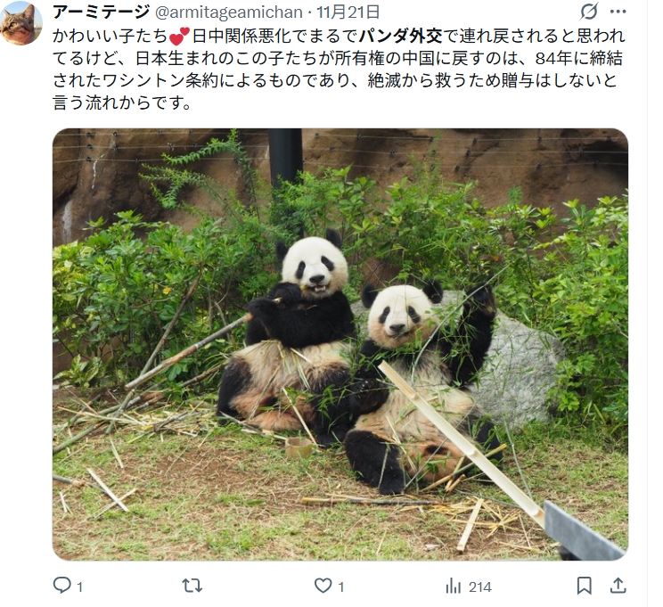 つまり、かわいい姿に癒されるだけでなく、パンダを見ることは国際関係の一部を体感することでもあるのです。
