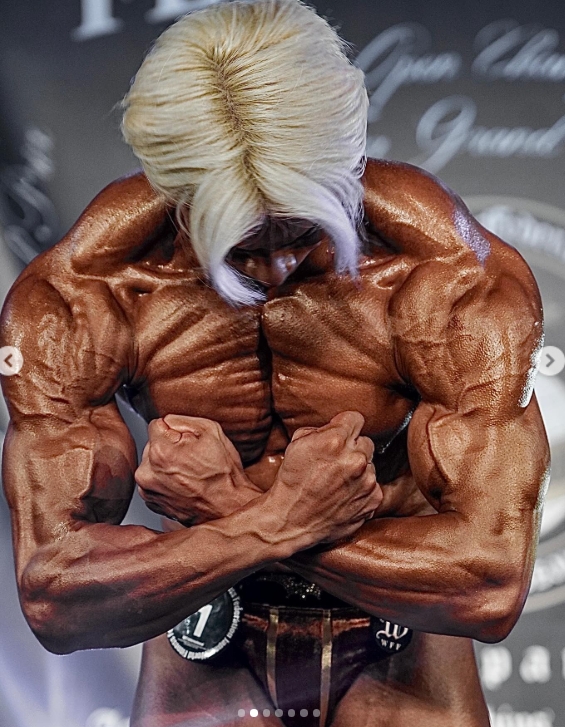 ボディビルダーならではの引き締まった美しい体です。